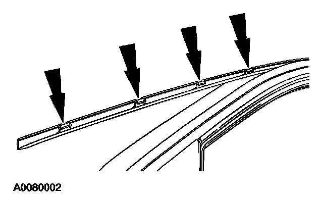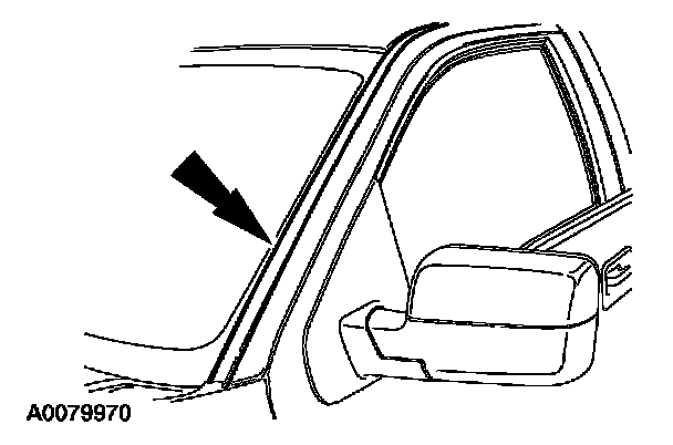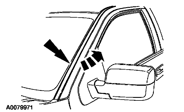 Press and hold the inside edge of the roof ditch moulding away from the centerline of the vehicle.