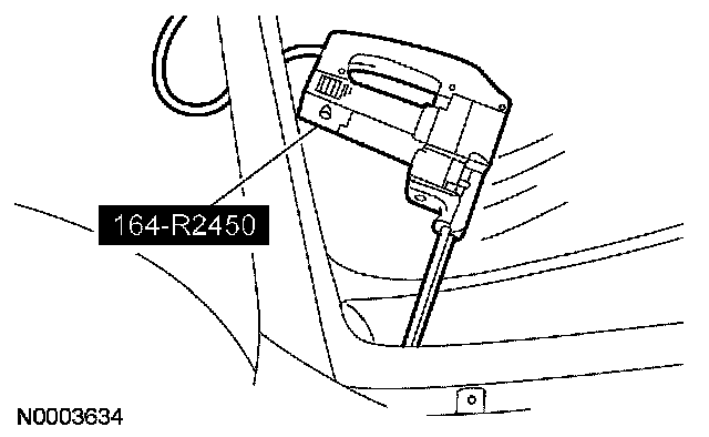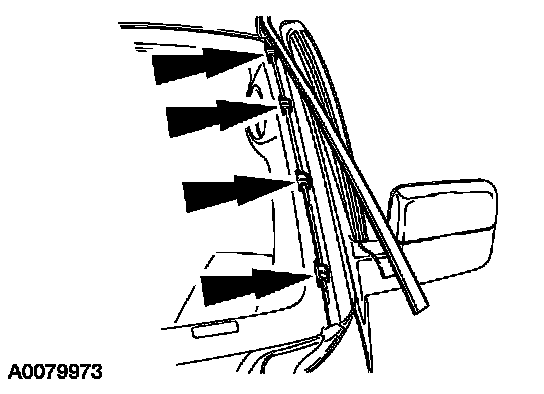 1. Remove the RH and LH side A-pillar trim panels, sun visors, retainers and, if equipped, overhead console.