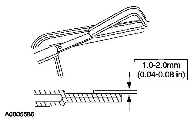 4. Trim the remaining urethane adhesive on the pinch weld to within specification. The surface should be smooth, free of cuts and contamination.