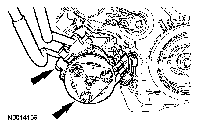 4. Loosen the A/C compressor bolts enough to slide the A/C compressor down 25 mm (1 in), to allow access to the CKP sensor.