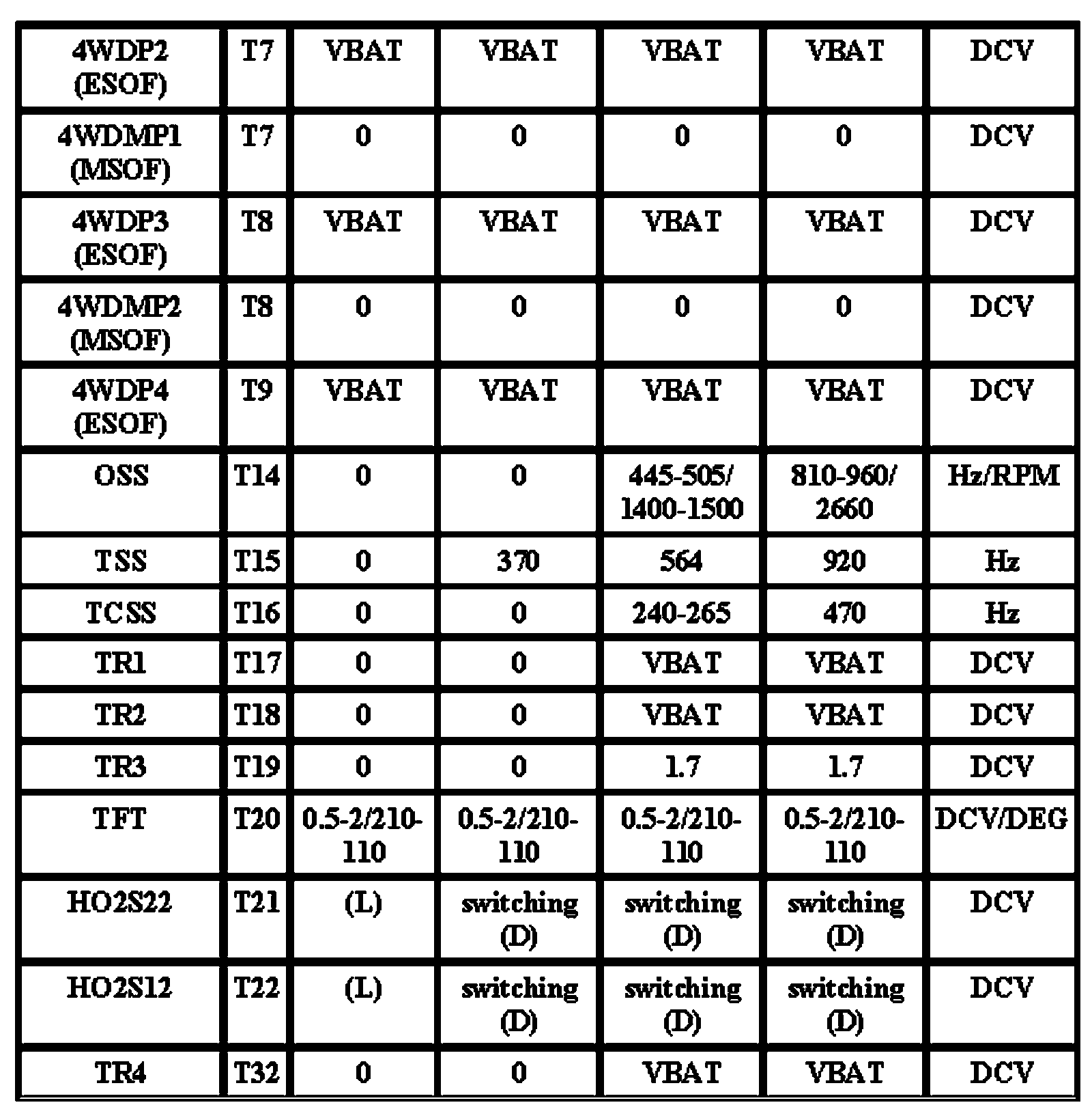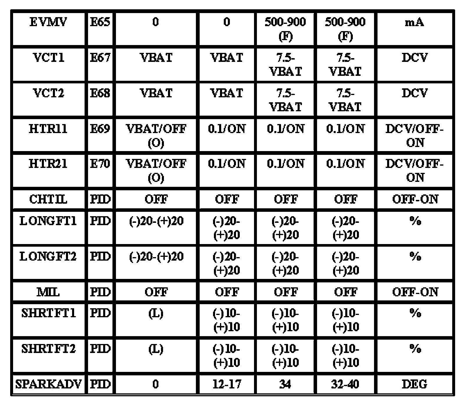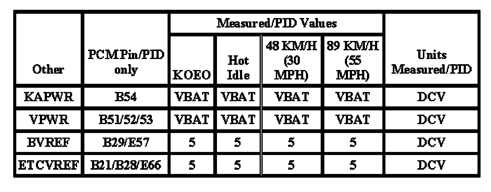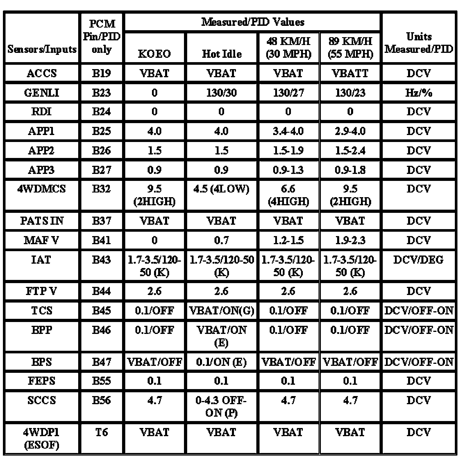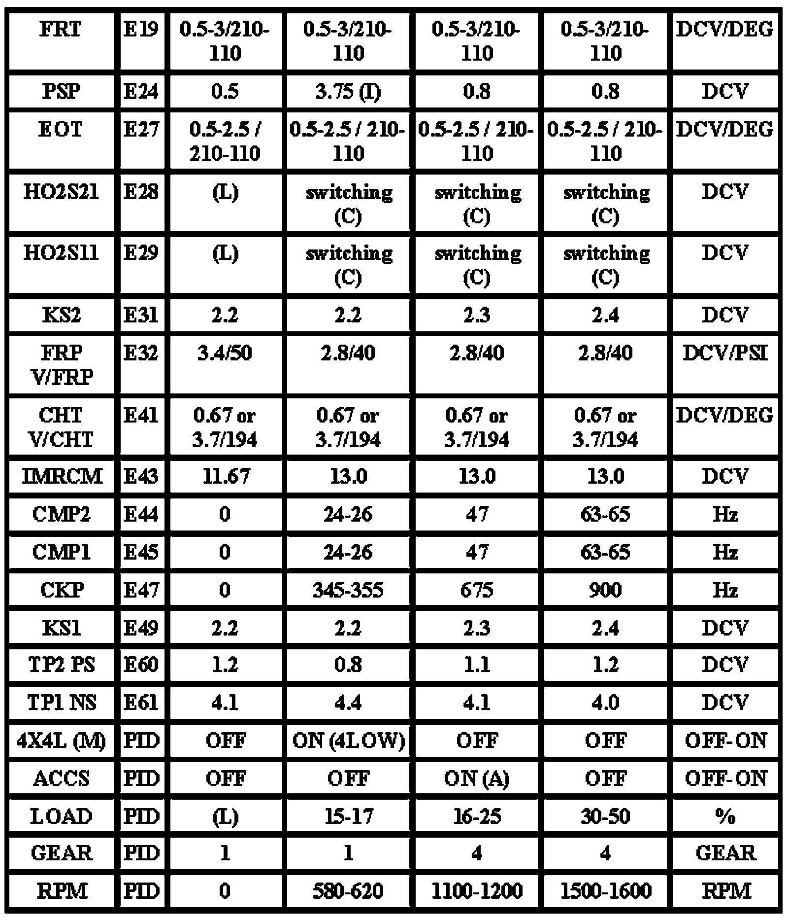 Note: All generic OBD readings under no load (PARK or NEUTRAL).
