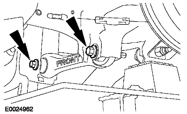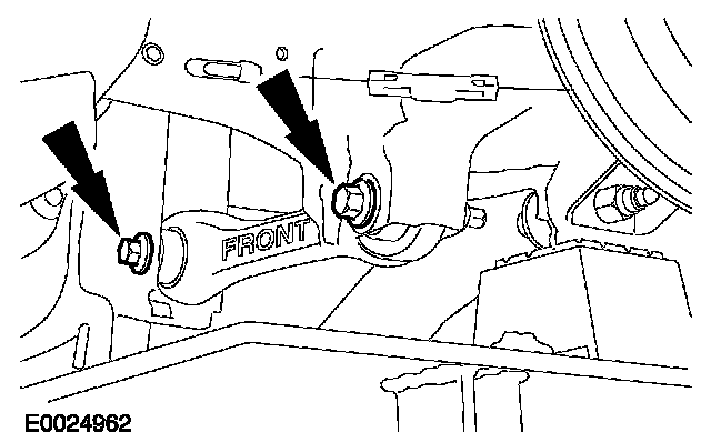 7. CAUTION: The front lower arm is marked FRONT. Make a note of the position of the front lower arm to aid installation.