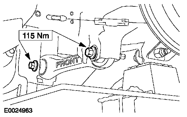 16. Tighten the front lower arm retaining bolts on both sides.