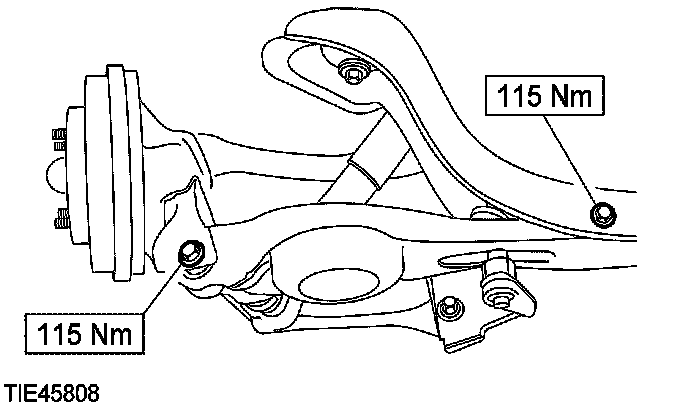14. NOTE: Final tightening of the rear suspension components should be carried out at or near curb height. Load suspension to achieve this.