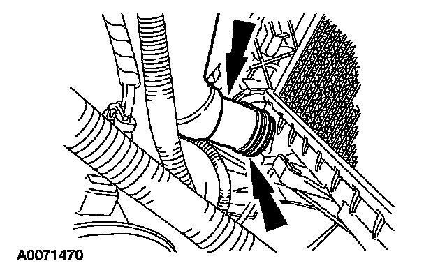 7. Release the clamp and disconnect the upper hose from the radiator.