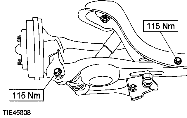2. NOTE: Do not fully tighten the rear lower arm-to-wheel knuckle retaining bolt at this stage.