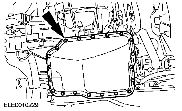 2. NOTE: Position a suitable drain pan under the fluid pan.
