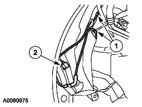 2 Disconnect the electrical connector and release the wiring harness from the washer reservoir.