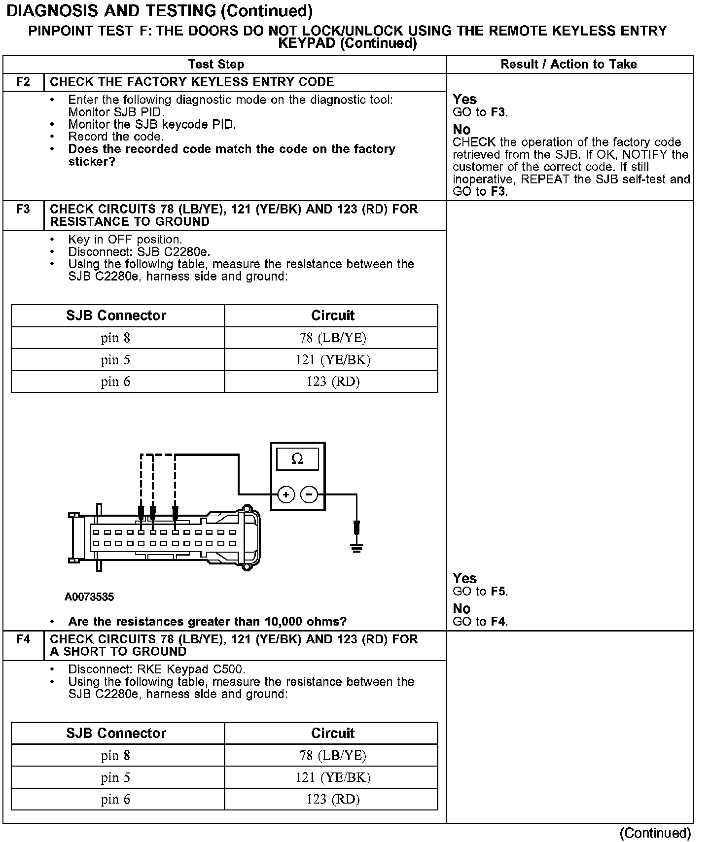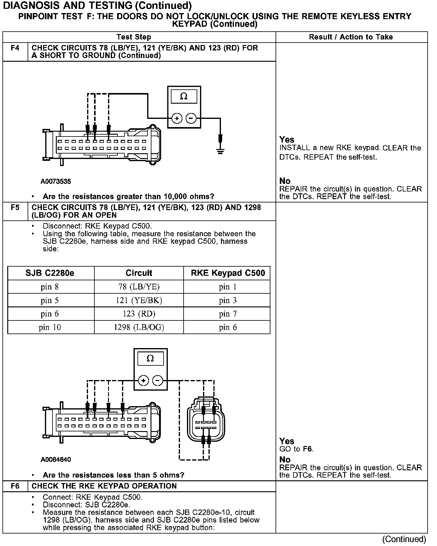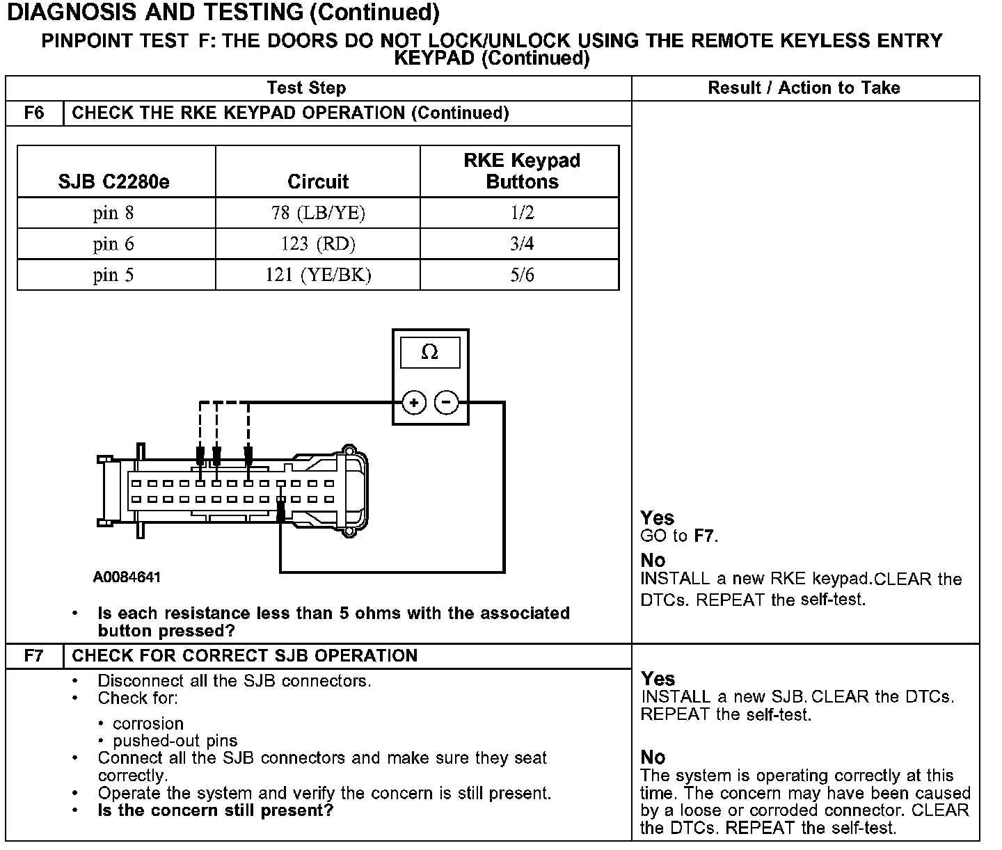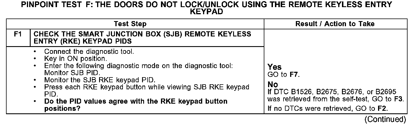 PINPOINT TEST F: THE DOORS DO NOT LOCK/UNLOCK USING THE REMOTE KEYLESS ENTRY (RKE) KEYPADF1:
