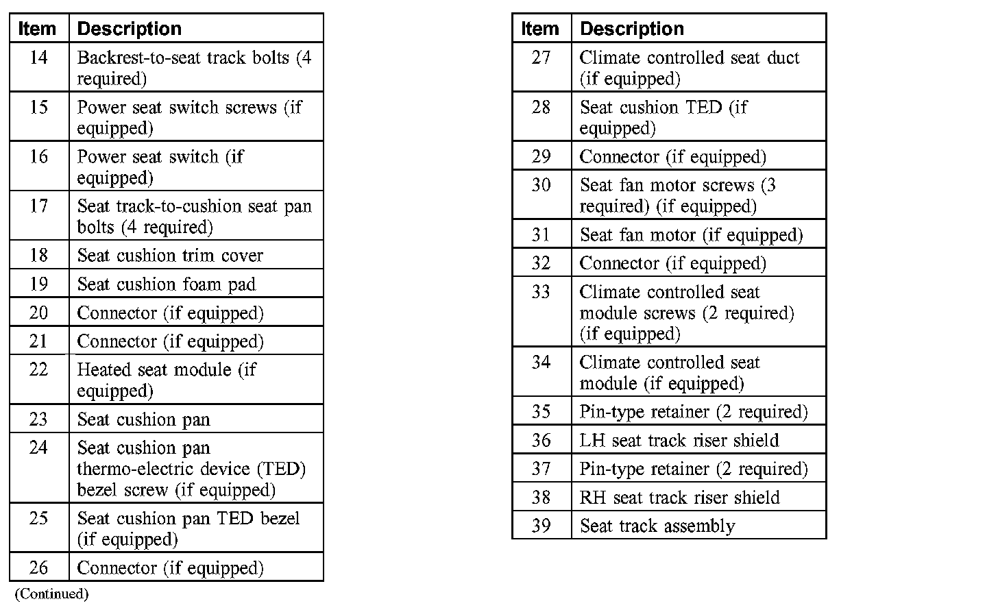 Seat - Exploded View, Front