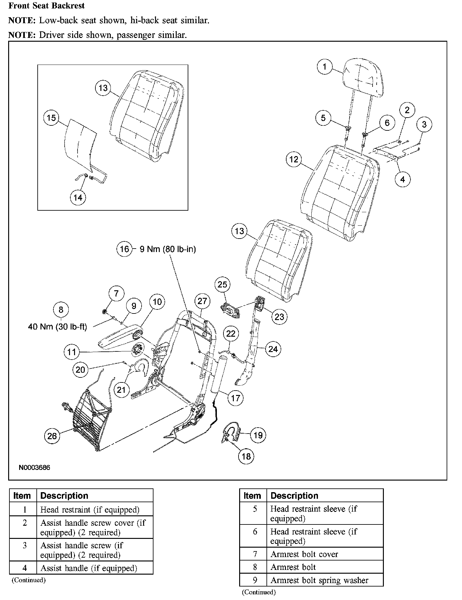 Front Seat Backrest (Part 2):