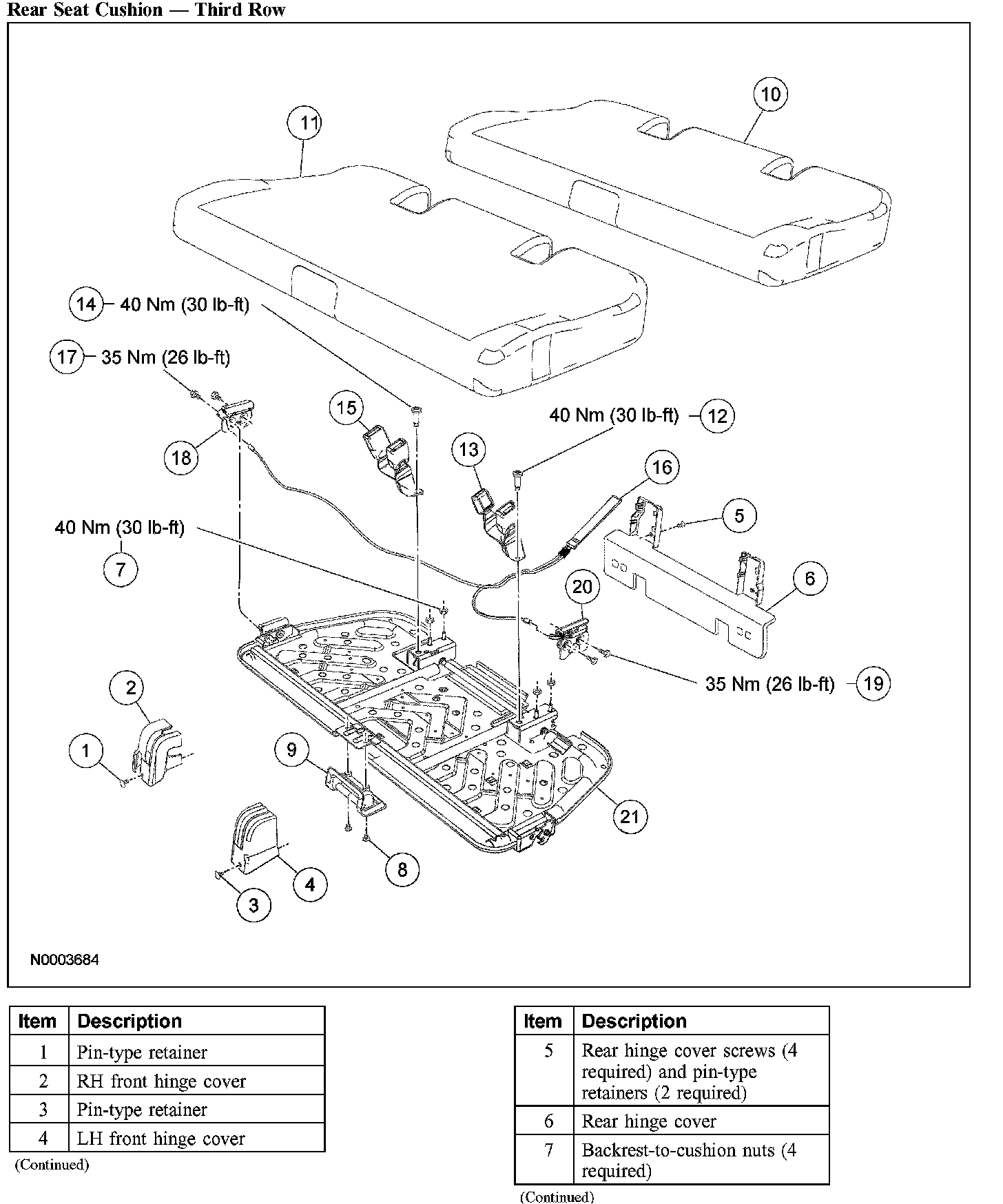 SEAT - EXPLODED VIEW, THIRD ROWRemoval and InstallationRear Seat Cushion - Third Row (Part 1):