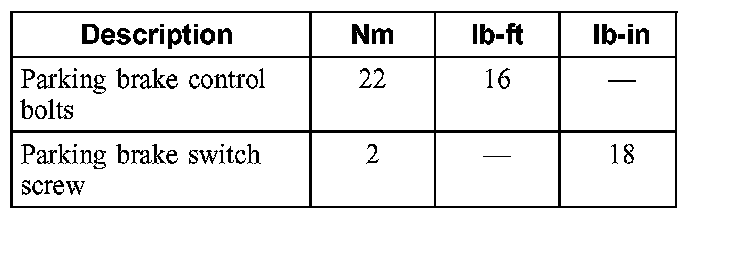 Parking Brake System: Specifications