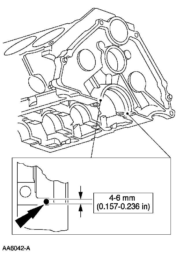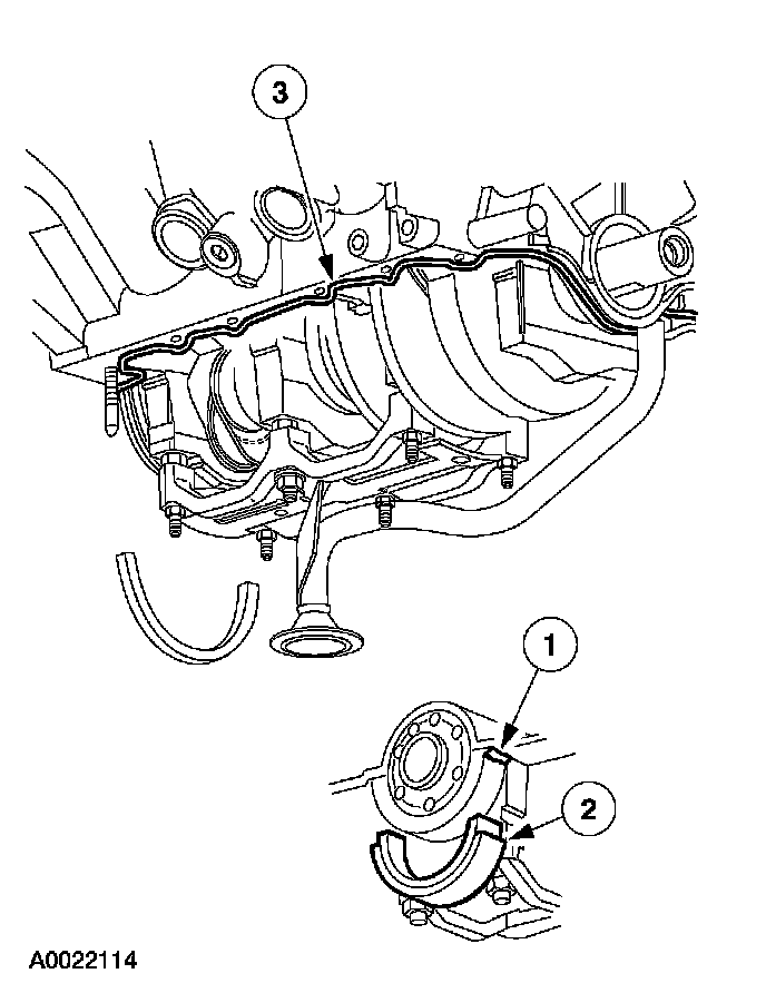 Clean the rear main bearing cap sealing area with metal surface cleaner. Apply silicone gasket and sealant to the rear main bearing cap-to-cylinder block parting line.