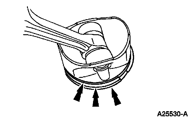 Install the special tool on the camshaft synchronizer by rotating the tool until it engages the notch in the camshaft synchronizer housing.