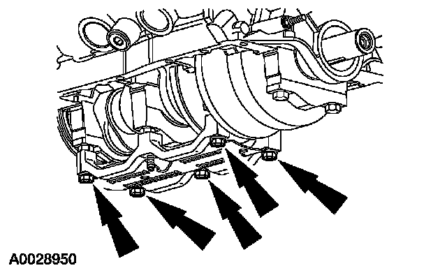 8. NOTE: If the rear main bearing cap is not installed within 4 minutes, remove the sealant and reapply.