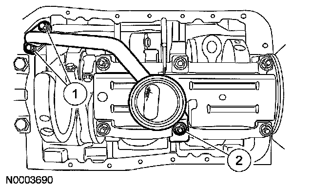 15. Install the oil pan baffle and the retaining nuts.