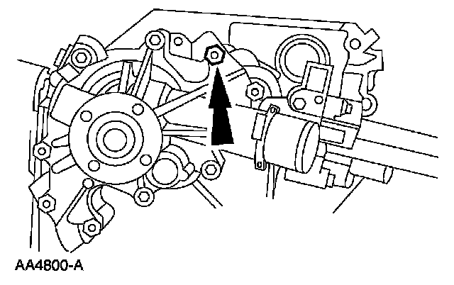 3. CAUTION: The capscrew is hidden; make sure to remove it or the engine front cover will be damaged. Remove the capscrew.
