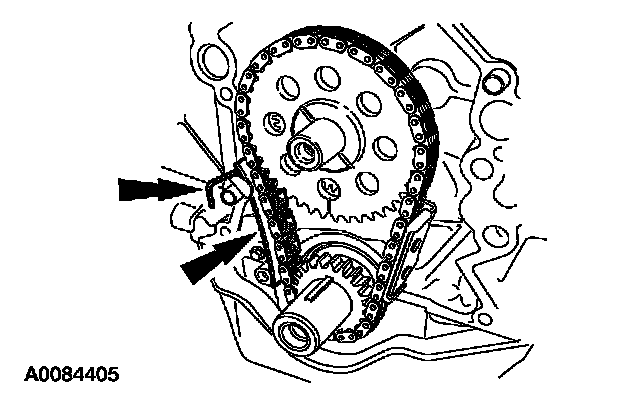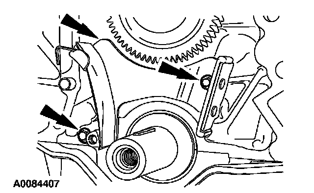 63. Remove the bolts and the timing chain tensioner.