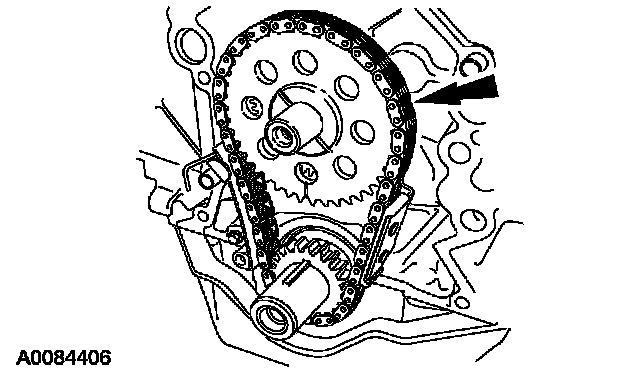 62. Remove the camshaft gear, the crankshaft gear and the timing chain as an assembly.