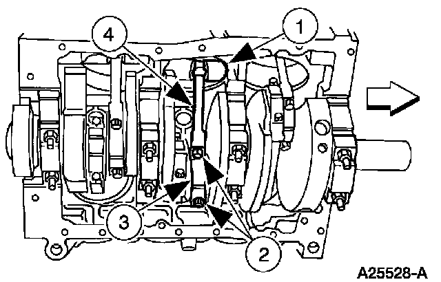 Remove the 4 main bearing caps and lower crankshaft main bearings.