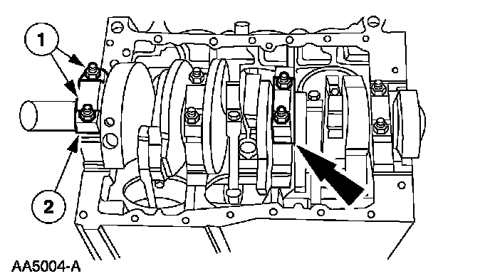 2. Remove the main bearing cap and lower crankshaft main bearing.