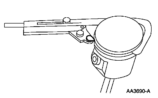 1. WARNING: Cover the end of the pin bore with a hand or shop rag when removing the retainer ring, since it has a tendency to spring out. Wear eye protection.