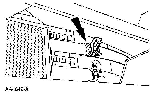 35. Install the power steering cooling hose into the retaining clip.