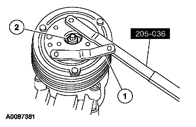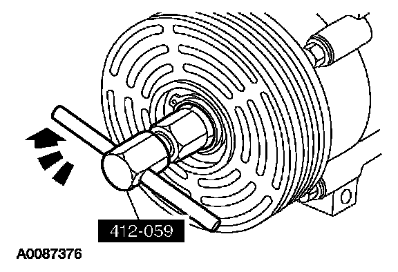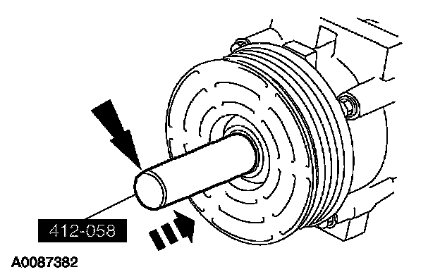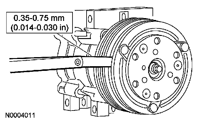 10. Measure and adjust the clutch air gap by removing or adding A/C clutch hub spacers.