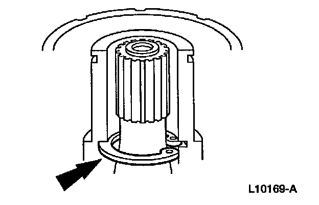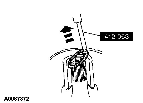 8. Pull the special tool up quickly while keeping the tool shaft against the side of the nose opening and remove the snap ring.