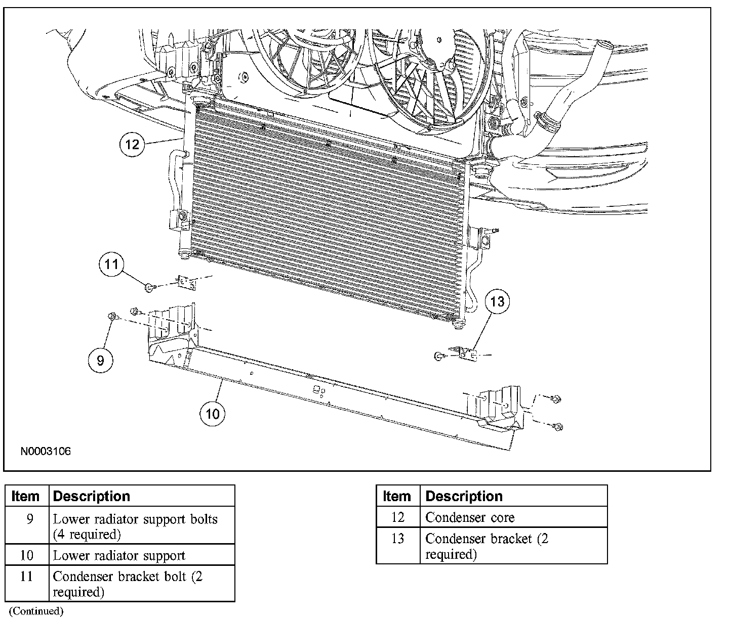 9. Correctly support the lower radiator support and remove the 4 lower radiator support bolts.