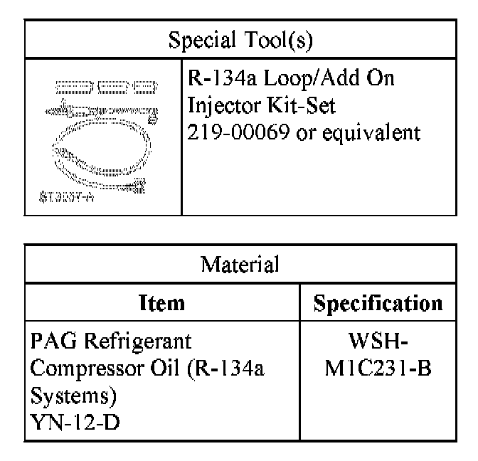 NOTE: This refrigerant oil adding method is to be used when a new suction accumulator or receiver drier only has been installed. If a new A/C compressor and evaporator core orifice or TXV have also been installed due to system contamination refer to the appropriate heading.