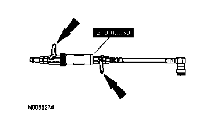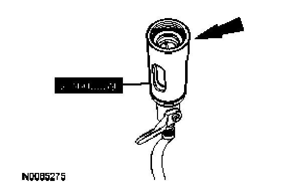 2. Inject the total vehicle PAG oil capacity minus 60 ml (2 fl oz) to the low-side service port during system charging. For the total PAG oil capacity specification refer to the Specifications table in this section.