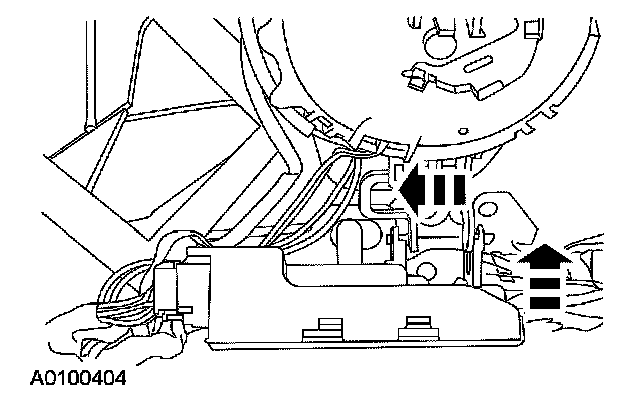 6. Pivot the power sliding door module upward and carefully slide the module to the left to detach module from the drive assembly.