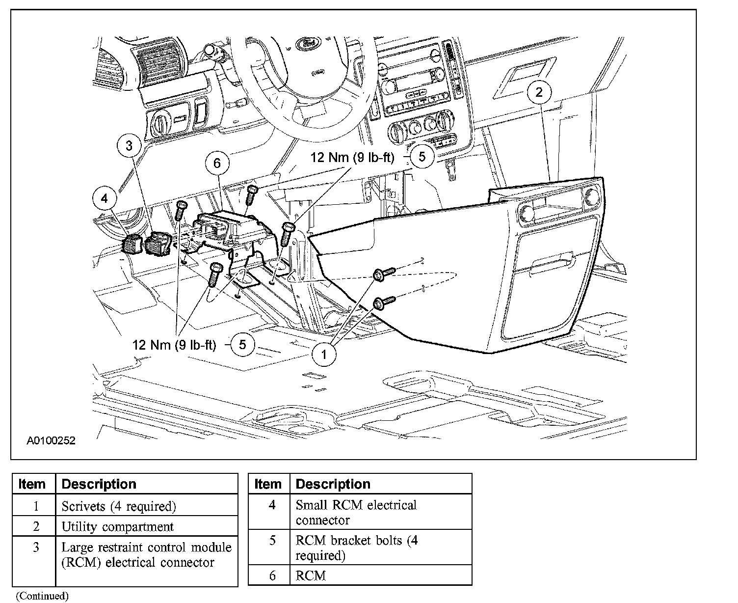 - When installing a new restraints control module (RCM), always make sure the correct RCM is being installed. If an incorrect RCM is installed, erroneous DTCs will result.