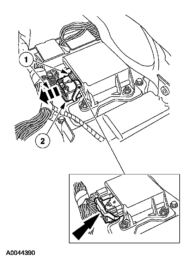 - When installing a new restraints control module (RCM), always make sure the correct RCM is being installed. The RCM 40-pin connector is keyed differently for vehicles with safety canopies and side air bags than the 40-pin connector for vehicles without safety canopies and side air bags. Do not force the 40-pin connector onto the RCM. If the connector is forced onto the RCM, damage to the RCM and/or connector will occur.