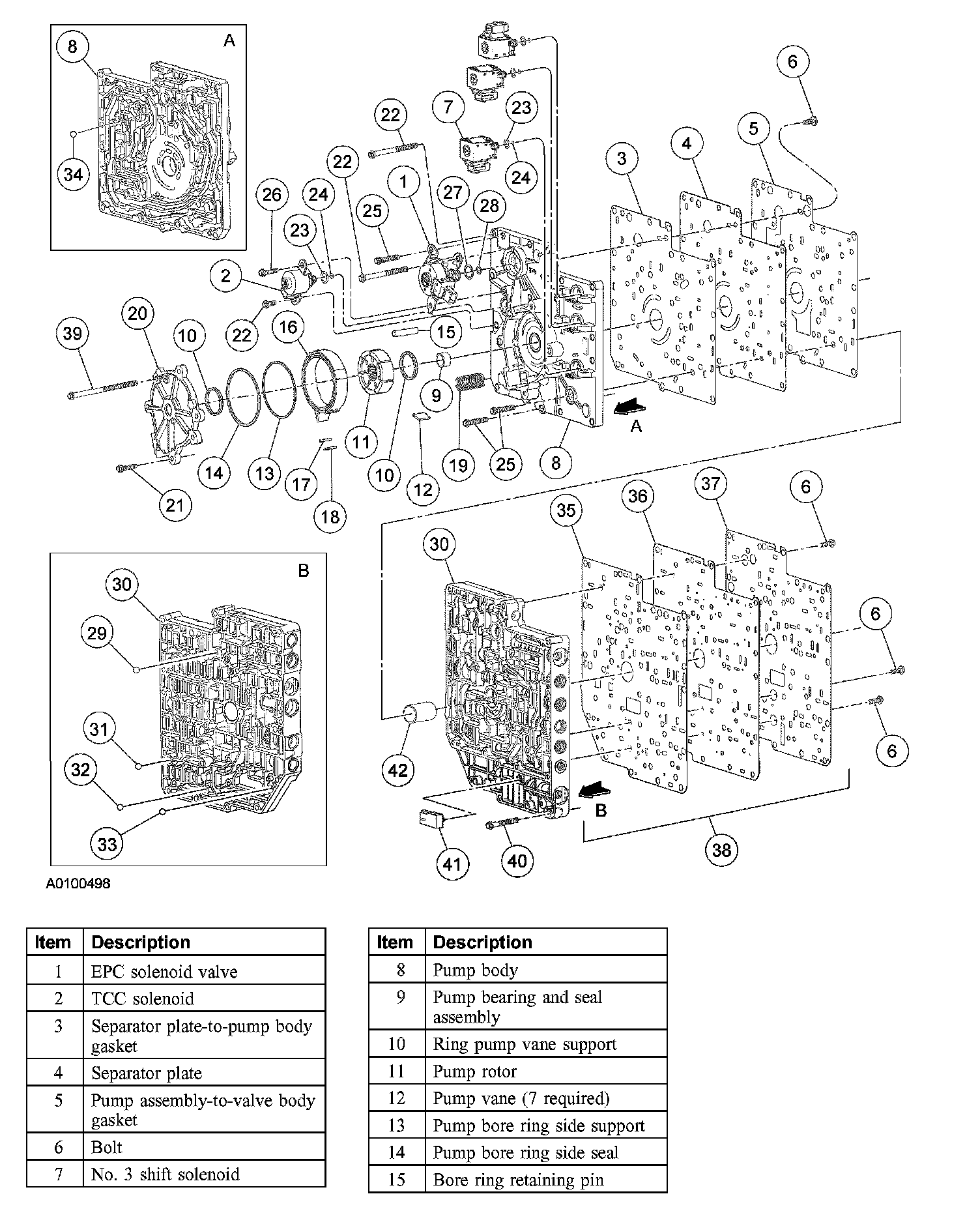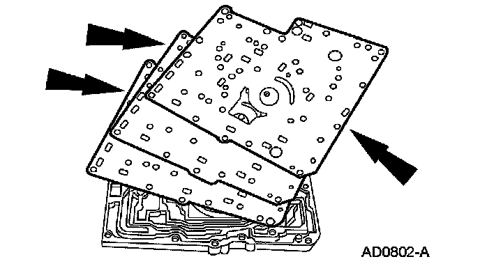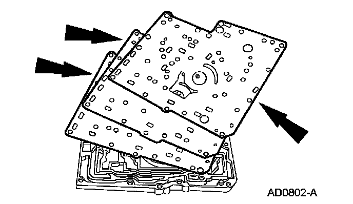 2. Remove the valve body separator plates and gaskets.