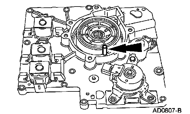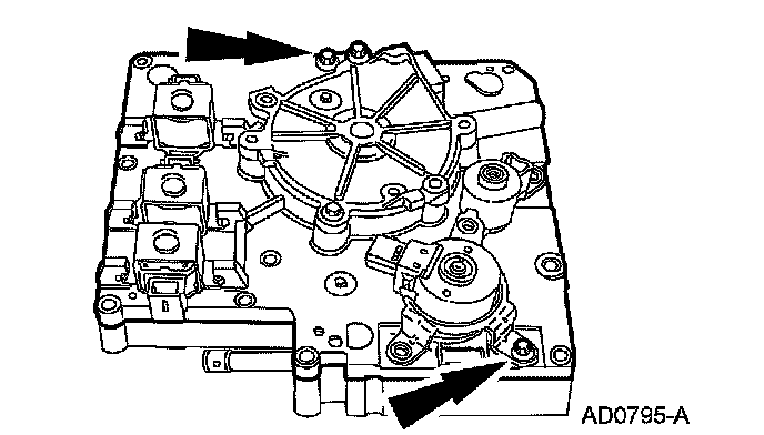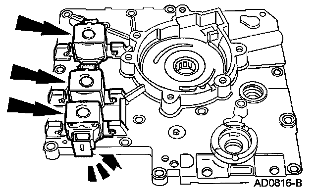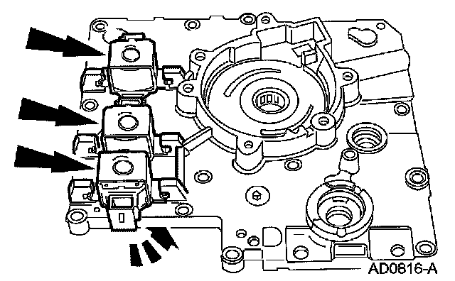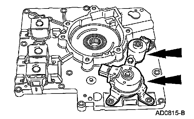 15. NOTE: The shift solenoids are interchangeable. Take note of the shift solenoid connector orientation.