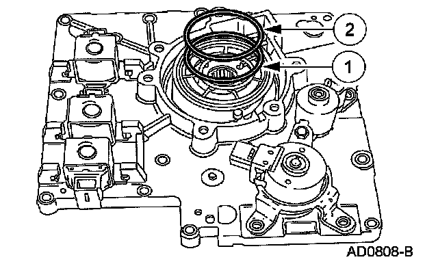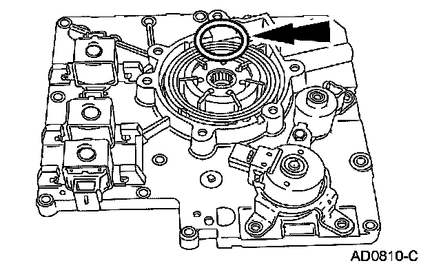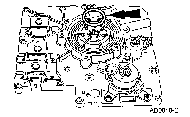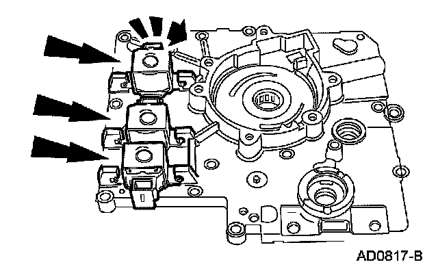 Install new O-ring seals and install the shift solenoids by pressing down and rotating them until they lock in place.