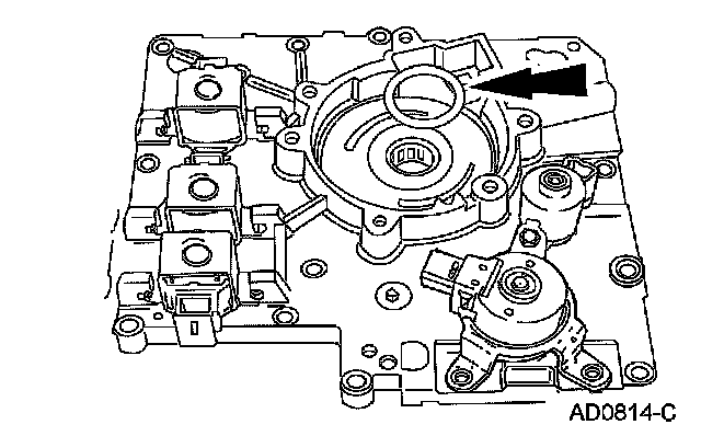 13. CAUTION: Be sure the pump bore area is well cleaned. It is a hidden foreign material trap. Flow from the pump goes into the manual valve circuit, then passes into the EPC circuit. Pump pressure at this point is very high. Any foreign material not cleaned out here will be pumped through the transaxle on the first operation.