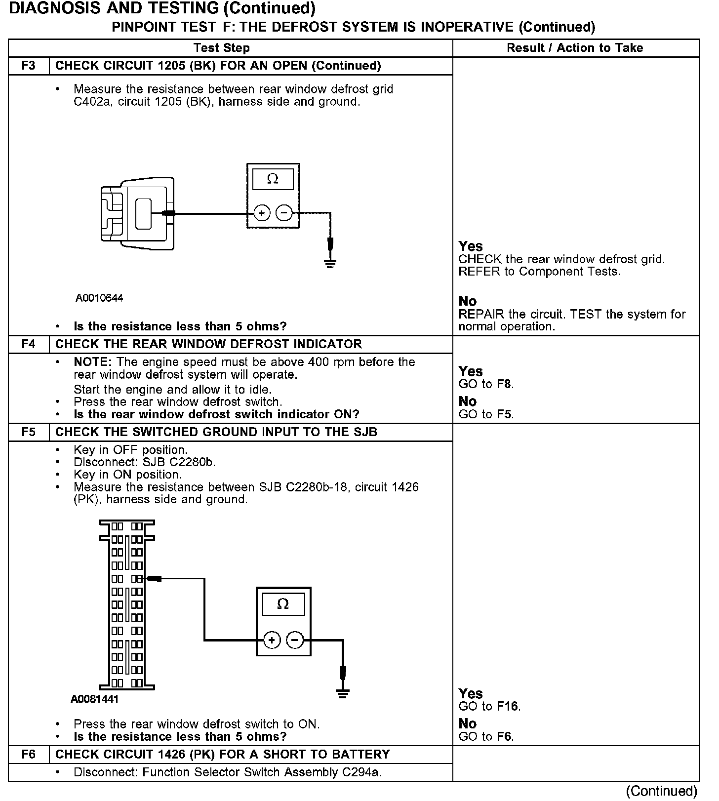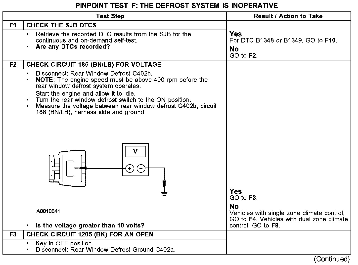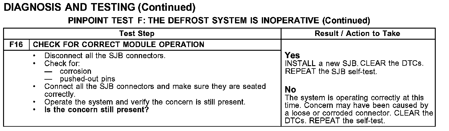 PINPOINT TEST F: THE DEFROST SYSTEM IS INOPERATIVEF1-F3: