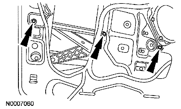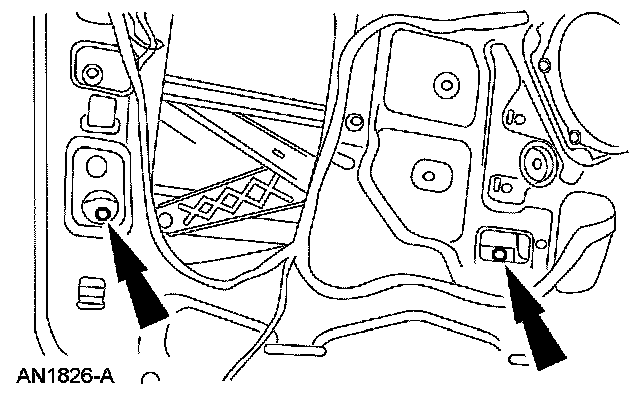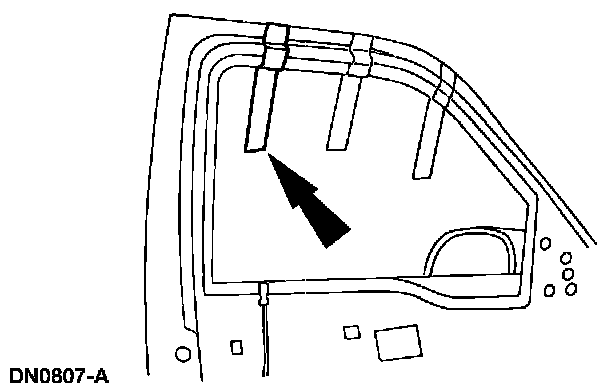 6. If removing only the front door window glass regulator assembly and motor, tape the window in the closed position after removing the rivets.