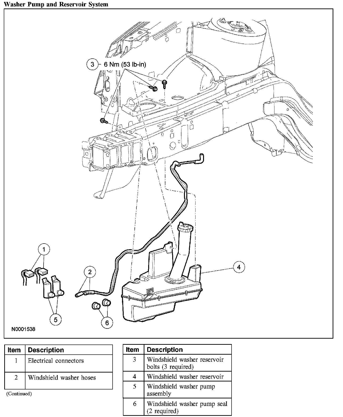 9. CAUTION: Do not make any electrical connections prior to filling the windshield washer reservoir. Do not operate the windshield washer pump prior to filling the windshield washer reservoir.