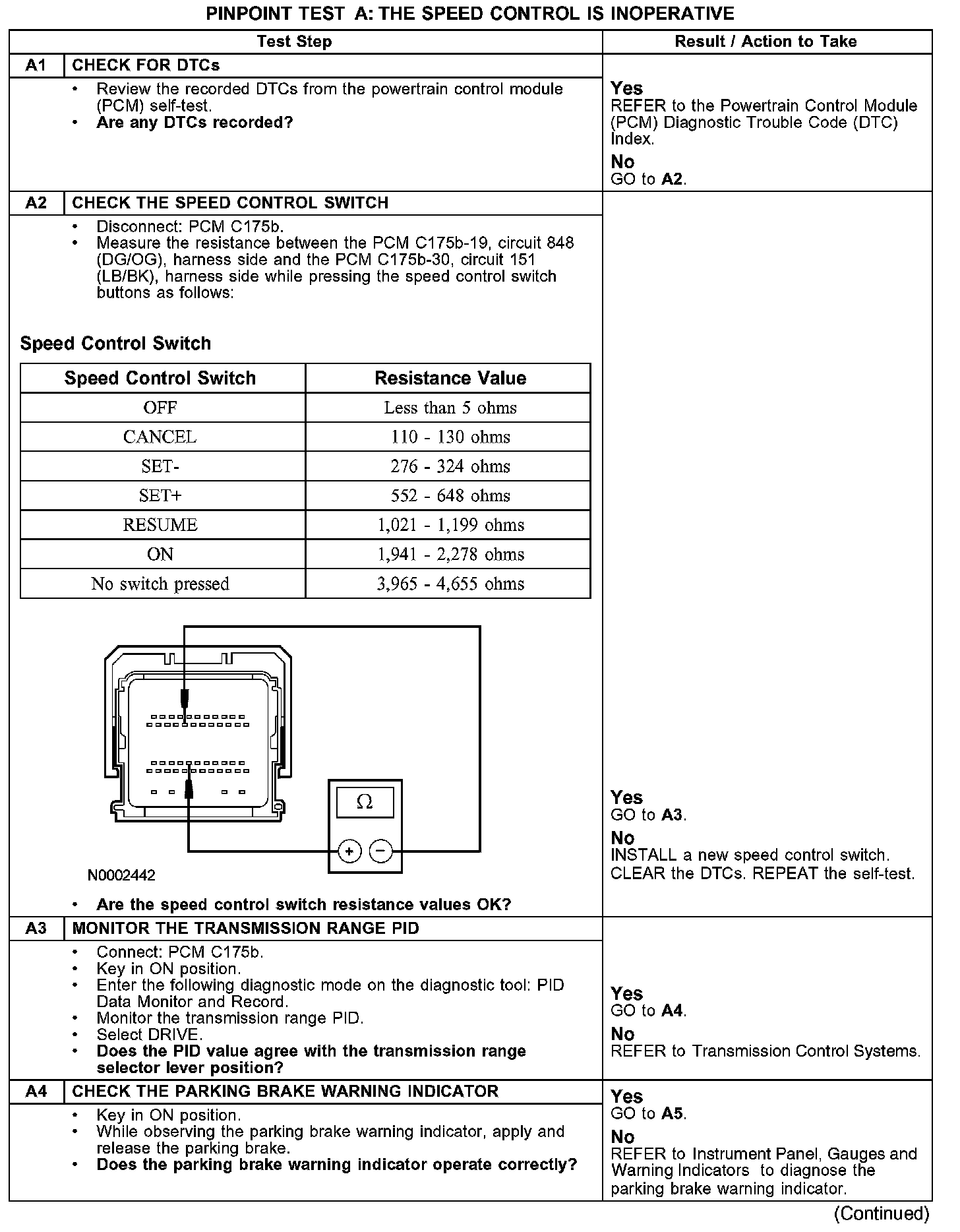 PINPOINT TEST A: THE SPEED CONTROL IS INOPERATIVEA1-A4:
