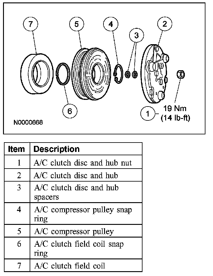 1. NOTE: The A/C clutch components should be reused unless obvious signs of damage are found. If excessive grooving is found, a new A/C clutch disc and hub and a new A/C compressor pulley must be installed together. Otherwise, each component can be installed individually where needed.