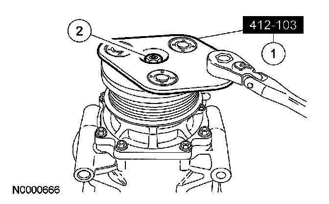 5. CAUTION: Do not use air tools. Damage to the A/C compressor pulley may result.