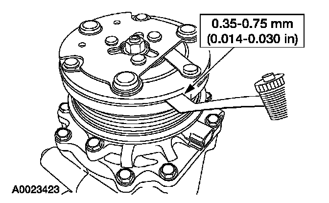 11. Measure and adjust the clutch air gap by removing or adding A/C clutch disc and hub spacers.