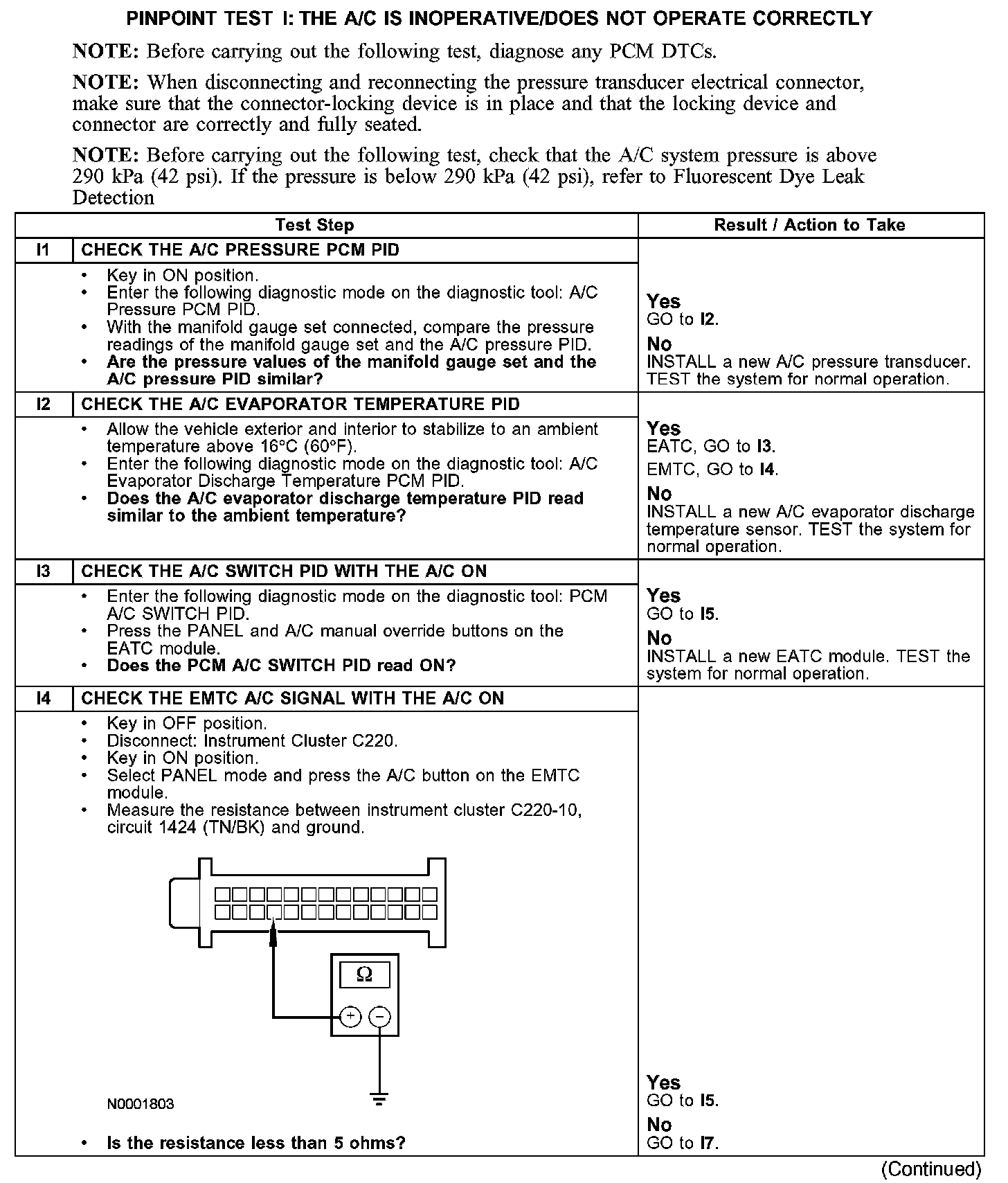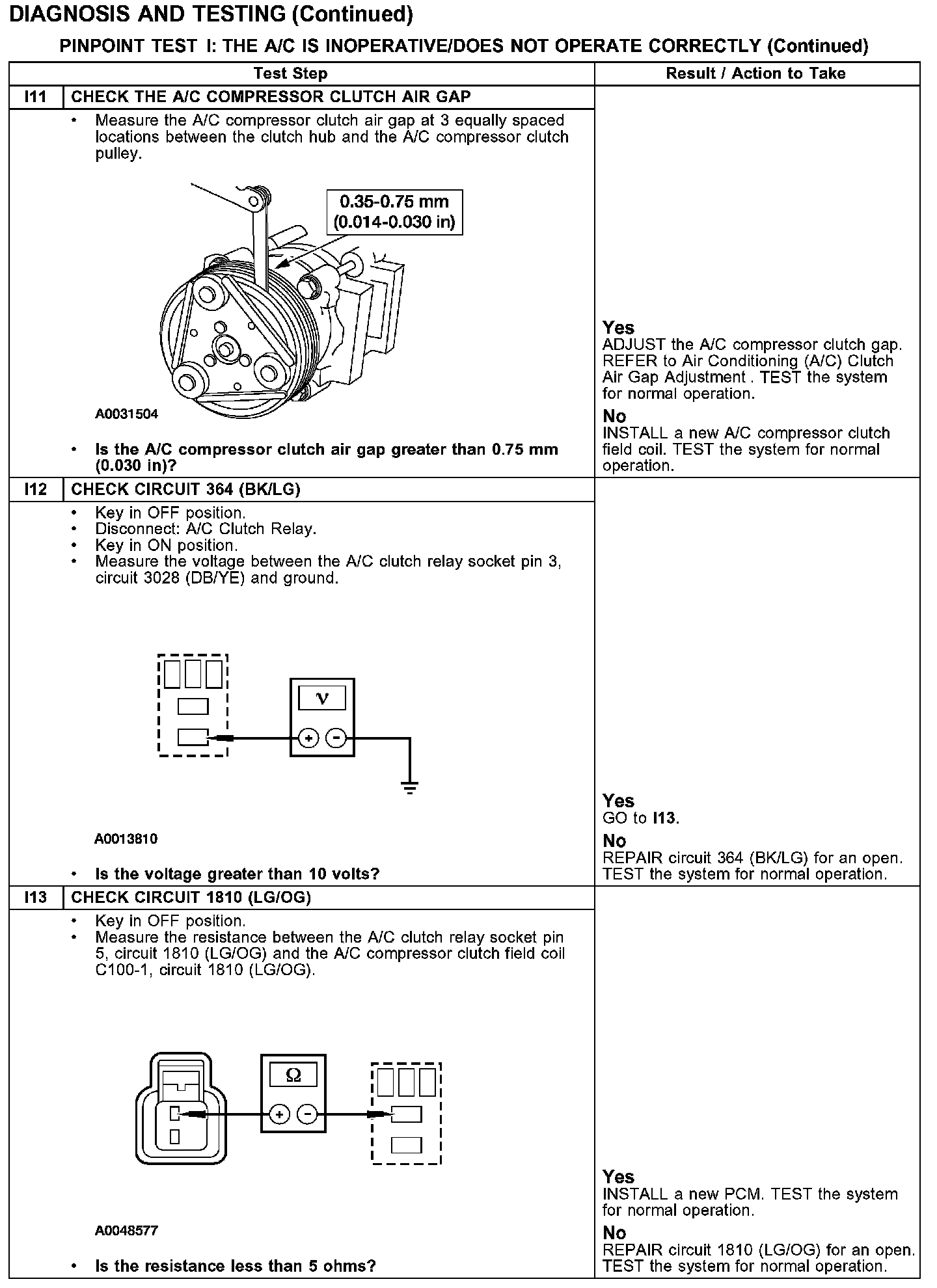 PINPOINT TEST I: THE A/C DOES NOT OPERATE/DOES NOT OPERATE CORRECTLYI1-I4: