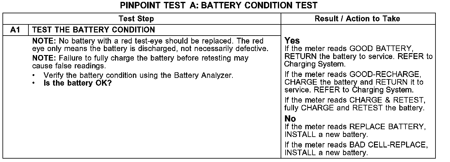 PINPOINT TEST A: BATTERY CONDITION TEST