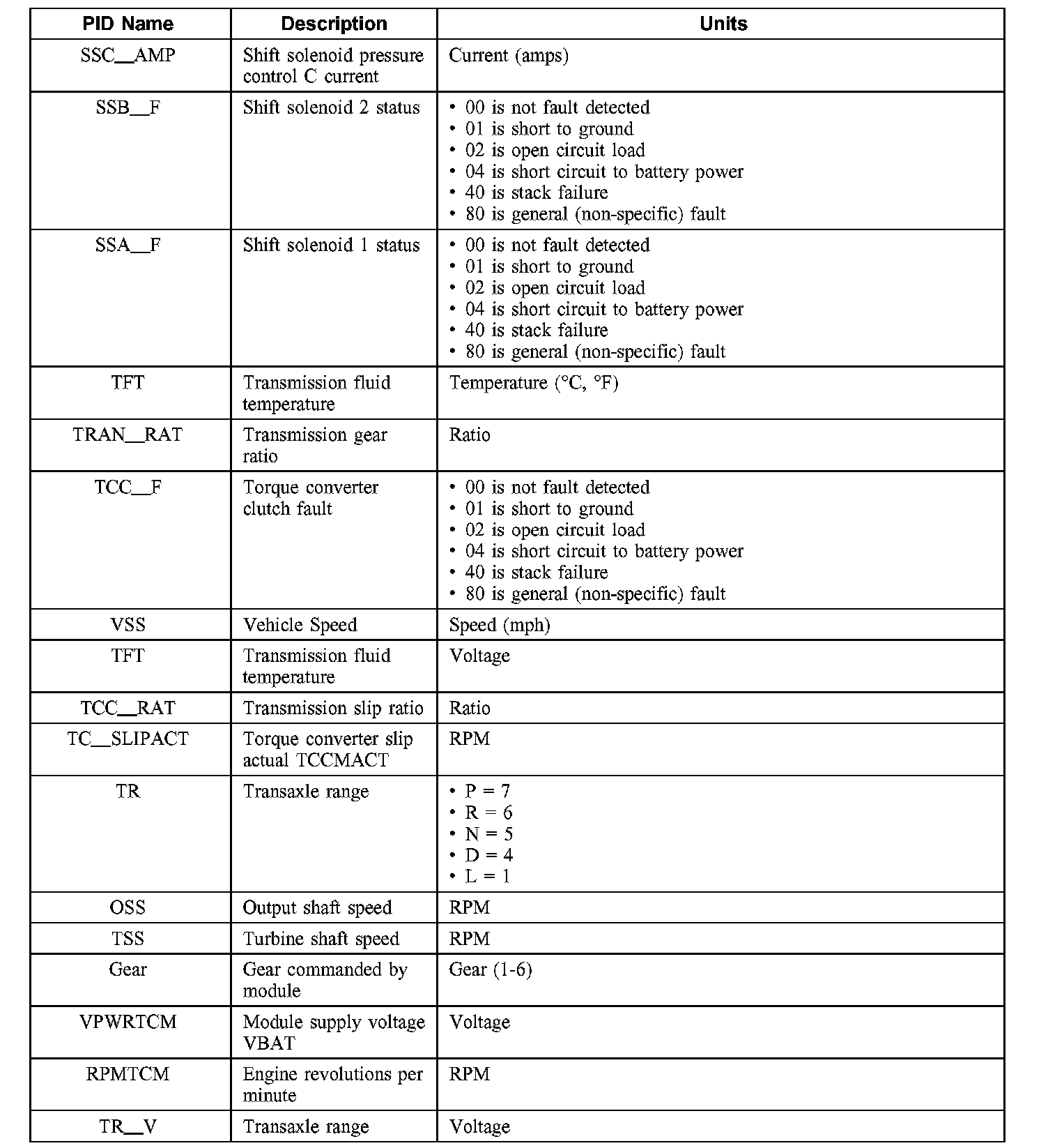 Diagnostic Parameters Identification (PID) Chart